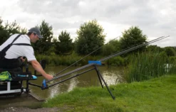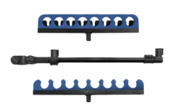 Deze topkit steun is te gebruiken in combinatie met een vistkist en wordt geplaatst op de poot van een viskist. De standaard biedt plaats aan 8 topdelen die dankzij het EVA schuim goed op hun plek blijven liggen. Doordat de delen zowel aan de onderkant als aan de bovenkant vastliggen, is het er uit waaien vrijwel onmogelijk.
